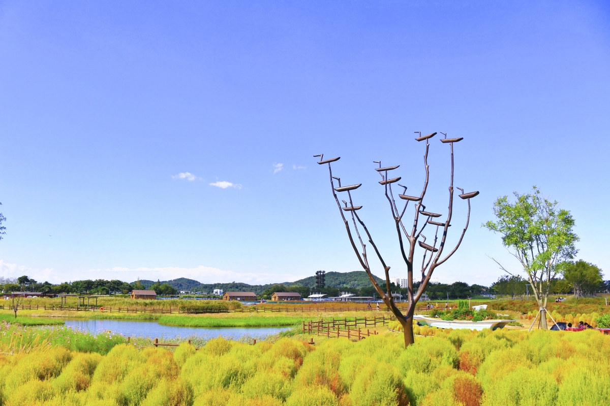 갯벌은 갯벌대로 초지는 초지대로 계절의 색깔을 그대로 담고 있는 공원의 모습은 맑은 하늘과 어우러져 잊지 못할 풍경을 만들어 낸다.